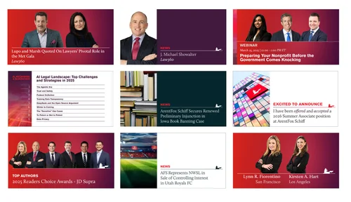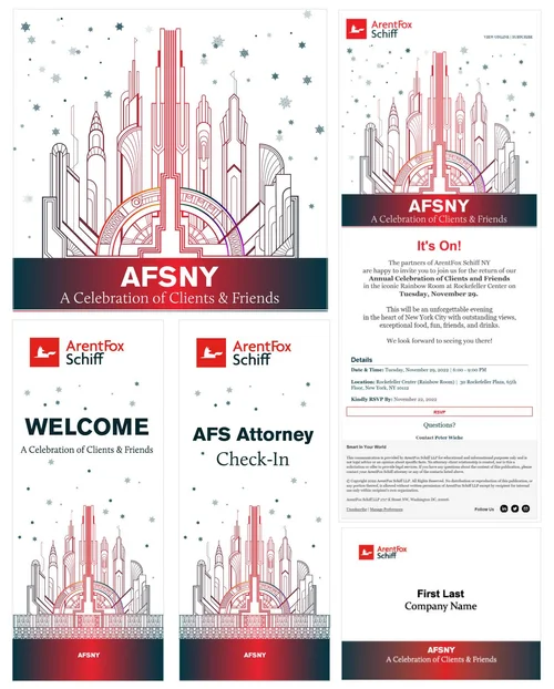 Beyond the homepage, our website now features updated practice and industry images and a new background for bio photos. These branding updates extend to various marketing materials, including email marketing templates for client alerts, event invitations, and announcements, social media imagery, pitch and proposal templates, individual LinkedIn banners, and a new, user-friendly AFS PowerPoint template for firm-wide use.